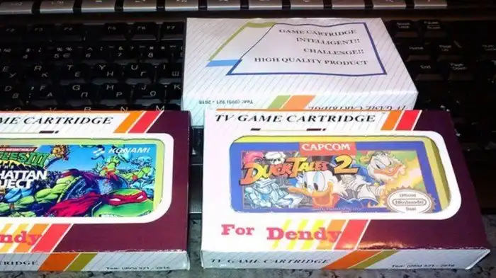 Пираты тоже не лыком шиты: для клона, известного как Dendy, предлагали обычные картриджи и якобы лицензионные — со стикерами на русском и в аккуратных упаковках. Естественно, ценился второй вариант, хотя выбор был, по сути, из двух подделок.