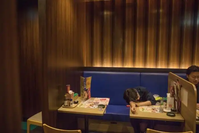 Считается, что сон постоянно отрывает нас от жизни, однако настоящее бедствие — это хроническое недосыпание. В Японии около 40% населения спит меньше 6 часов в день. Сон в общественных местах (как в этом круглосуточном кафе в Токио) воспринимается как нечто совершенно нормальное.
