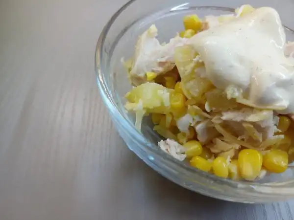 Украшение салата на ваше усмотрение. Попробуйте приготовить этот легкий салатик и оцените насколько он простой и вкусный.