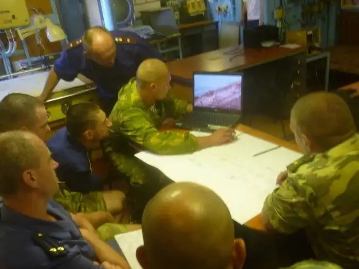 В то время, как пираты с помощью самодельных самодельных крюков и абордажной лестницы взбирались на корабль и устраивали погром, на российском противолодочном корабле разрабатывался план действий по обезвреживанию захватчиков.