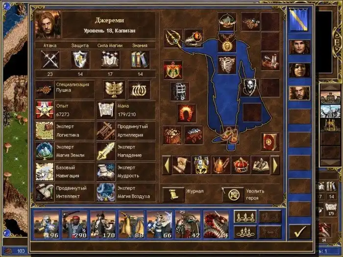 Как следствие, пираты вооружены пистолями на четыре патрона, поэтому, бесплатный совет, тележка с боеприпасами будет отнюдь не лишней покупкой. Также в кузнице пиратского замка можно купить пушку. Стоит «бабахала» недешёво, 5000 золотых. Впрочем, среди стартовых героев замка есть персонаж, который получает пушку совершенно бесплатно в самом начале игры. Пушка, как ни трудно догадаться, привязана к навыку – «Артиллерия». В отличие от классической баллисты, раскачка навыка не даст пушке двойной выстрел, но суммарный урон, всё равно, окажется выше. В целом, Джереми (герой, специализирующийся на пушке) один из лучших вариантов выбора при старте за пиратов. К слову, он с самого начала имеет навык – «Логистика». Что это за навык, и для чего он нужен, ветеранам игры объяснять не надо, а если вы новичок, то разговаривать с Вами не о чем (я это объяснил ещё вначале своей статьи, ступайте уже играть в Героев 3!)