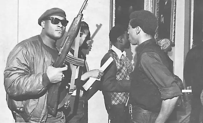 Действия Пантер становились всё более провокационными. Когда в мае 1967 года Ассамблея штата Калифорнии решила рассмотреть поправки к поправке об оружии и запретить открытое ношение оружия – Сил лично отправился с группой из 26 вооруженных «пантер» в зал Ассамблеи. Представьте себе, заседает «дума» штата – и в зал вламываются 26 вооруженных афроамериканцев, угрожая охране и игнорируя замечания. Говорят, что именно эта «выходка» «пантер» напугала некоторых влиятельных белых людей, которые до того момента вообще не знали об их существовании.