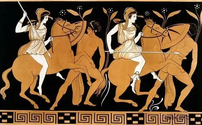 Скорее всего, название "амазонка" произошло от древнего слова, обозначавшее женщину-война. Племя амазонок - общество, в котором жили только лишь прекрасные и сильные женщины. Они не хотели признавать власть и силу мужчин, неоднократно побеждая их в битвах.