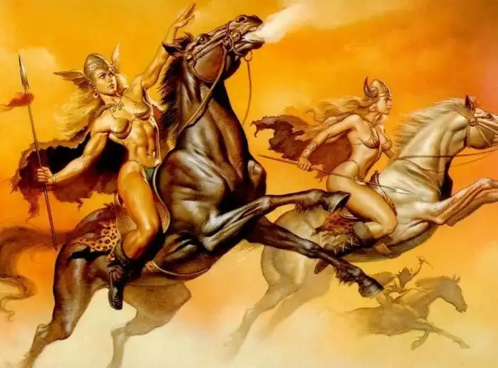 Согласно греческим мифам, у амазонок существовало своё государство, которое возглавляла женщина. Она владела магическим поясом, который, однажды, захотел украсть сын богов Тесей. После продолжительных и тяжёлых боёв ему всё-таки удалось это сделать, но очень большой ценой.