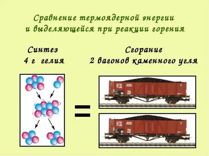 Сравнение термоядерной энергии и энергии, выделяющейся от реакции горения. Источник изображения: prezentacii.info