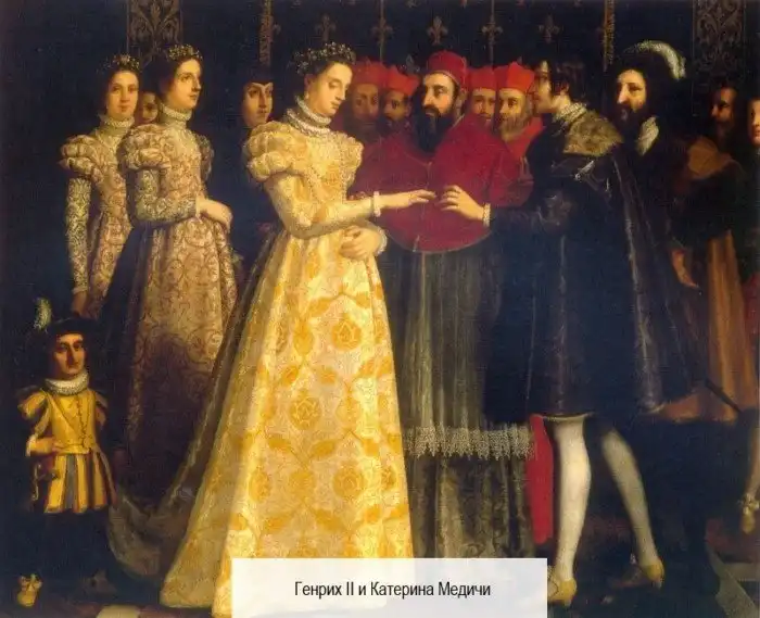 И всё-таки, как гласит песня, «жениться по любви не может ни один король». Генриху шёл пятнадцатый год, когда он был обручён с Екатериной Медичи. Несмотря на то, что супруга сходила с ума от любви к своему мужественному и прекрасному мужу, для него она совершенно ничего не значила.