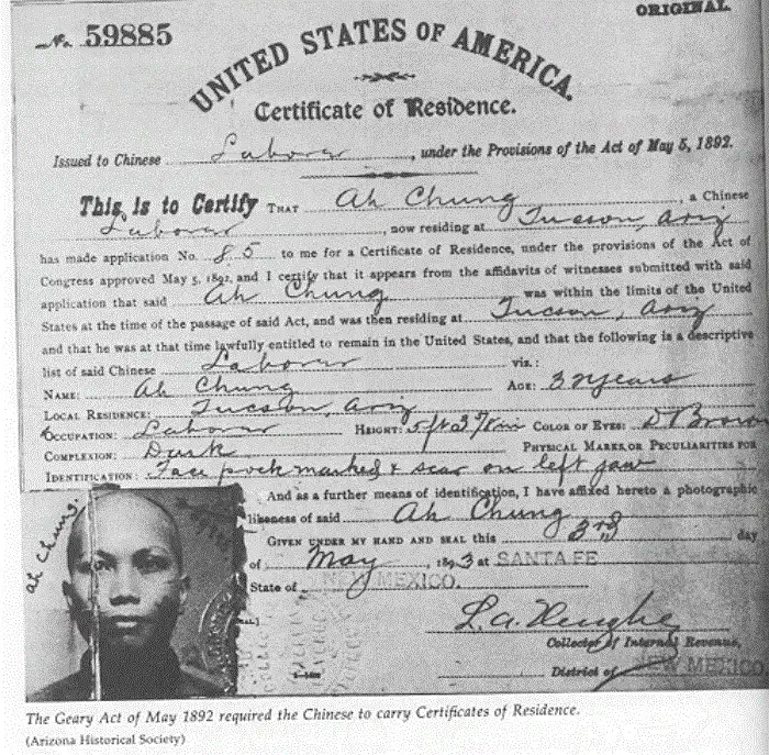 В мае 1892 года приняли закон Джерри, которым китайских жителей обязали иметь отдельный паспорт - вид на жительство. Невыполнение каралось депортацией или годом каторги. Им запретили давать показания в суде. Получать освобождение под залог. Чтобы получить вид на жительство китаец должен был привести двух белых свидетелей, подтверждающих его иммиграционный статус, и затем предоставить копию в офис налогового представительства.