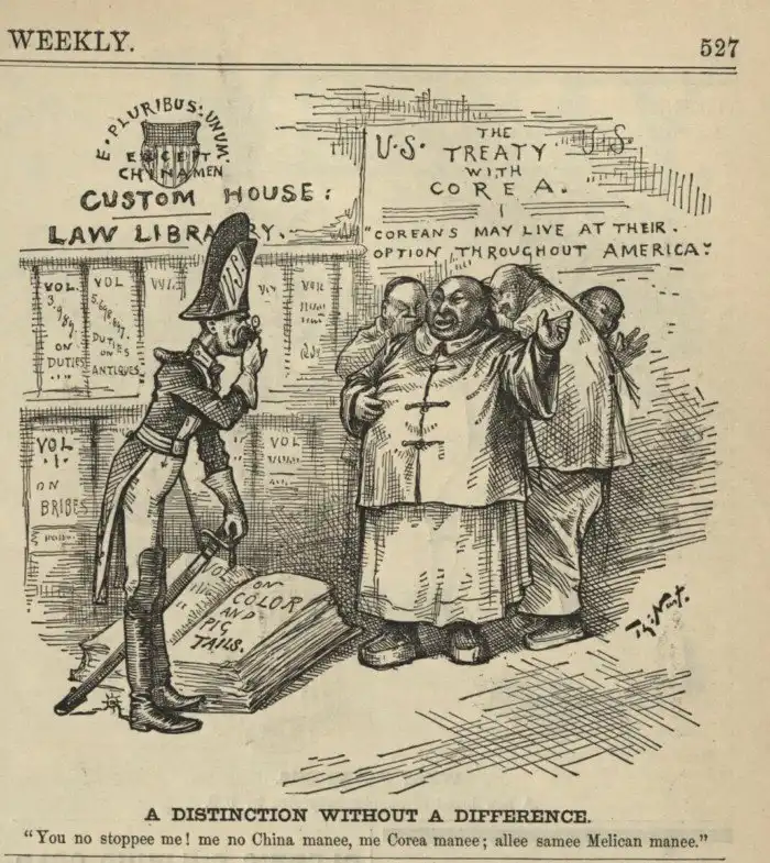 Первые ограничения на въезд, принимаемые в Штатах, были выборочными, и ими пытались заткнуть возникающие проблемы по одной. В 1872 году ограничили въезд женщин. По китайским традициям в некоторых социальных группах было нормальным отправлять одну девочку в семье на заработки занятием проституцией. А при развитии судоходства и образовании связей с китайскими коммунами в США таких девочек стали всё чаще увозить для заработков к богатым заокенским партнёрам. В 1888 году Конгресс принял Закон Скотта, запретивший возврат китайских жителей США, уехавших в Китай навестить родственников. И да, речь идёт не про обычных мигрантов, а про жителей США китайского происхождения. Из-за этого решения разительно отличающиеся по культуре китайцы оказались заперты в половом диморфизме на территории штатов. Европейки за них замуж-то не стремились.