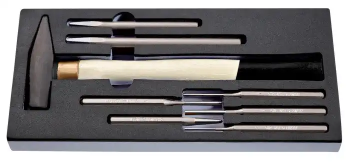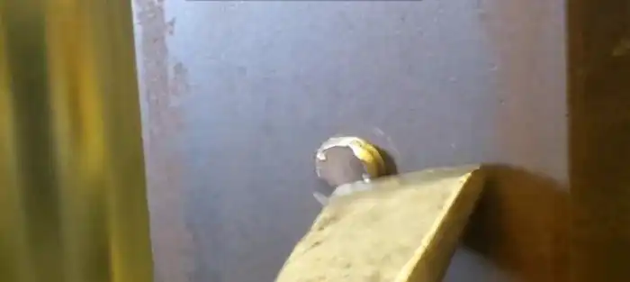 Керн позволит выкрутить болт, если он сломался ниже головки или у самой резьбы. Упираем инструмент в месте облома болта и начинаем оказывать на него воздействие молотком. После нескольких ударов должна появиться неровность, за которую впоследствии можно будет ухватиться клещами или плоскогубцами.
