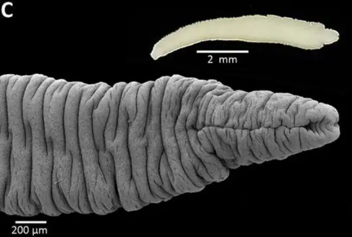Вызывает его ленточный червь рода Diphyllobothrium. И, если вы до этого думали, что самый большой и страшный червяк, которого вы можете встретить - это анаконда в зоопарке длиной 8 метров, то ленточные черви Дифилоботриум вырастают до размеров где-то между китовой акулой (8-10 метров) и синим китом (25-30 метров), достигая средних 12-15 метров. И всё это в рамках ваших внутренностей.
