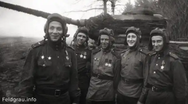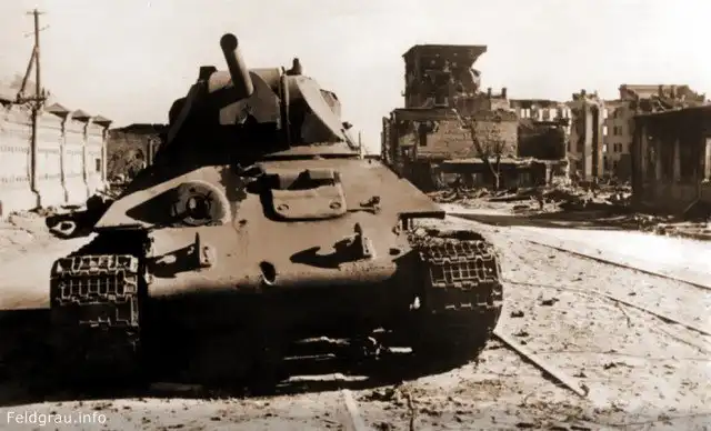 В это время с левого фланга одна СУшка пошла за немцем, то есть уже ему навстречу. Фонари не включают ни тот, ни другой. Самоходка прошла мимо нашего дома и бок о бок разошлась с "Тигром". Даже задели друг друга бортами. Тьма полнейшая! Между нашим и соседским домами стоял "Валентайн", развернутый на улицу. Я прыгнул на место наводчика, приготовился стрелять по команде комбата. Самому ничего не видно. Когда "Тигр" поравнялся со мной, Иван скомандовал, я выстрелил. Что там пулька, 40 миллиметров. Только искры выбило из башни у "Тигра", и он дальше пошел.