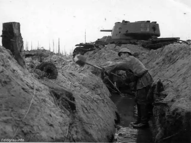 Дело в том, что по этой поляне ранее проходили танки, которые проделали глубокую колею. Один боец залёг в неё, а старшина и другой боец быстро вернулись в лес и замаскировались.