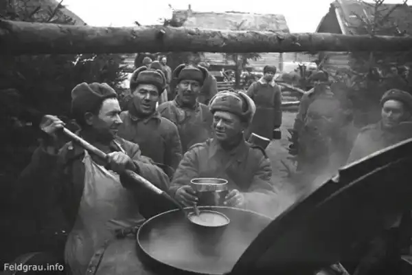 В нашей батарее был такой случай. Поваром у нас был крупный мужик, весельчак Ваня Чечурин. Кухню редко удавалось подтащить к переднему краю - то снайпера мешают, то снега навалит, тогда на нее отправлялись подносчики пищи с термосами, которых хватало человек на двадцать. Если же образовывалась пауза в боевых действиях, то кухню ставили рядом с расположением батареи.