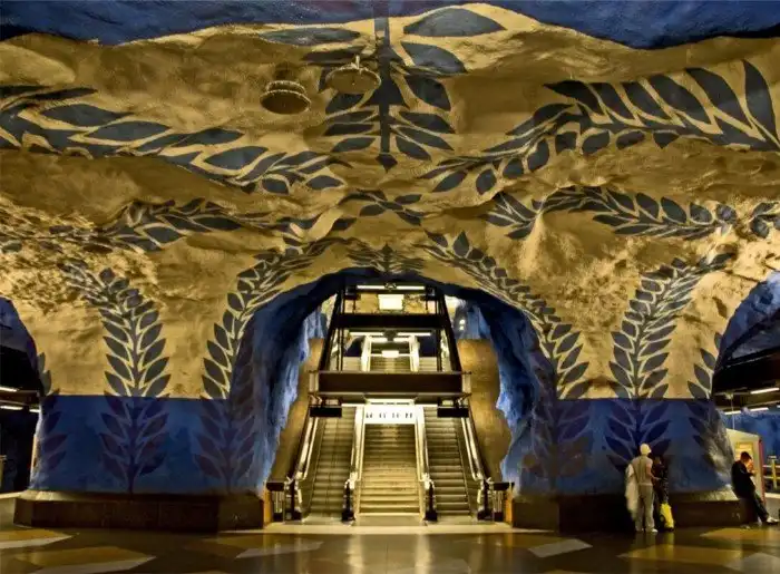 В Стокгольме же подошли к оформлению центральных станций. Одну из них так вообще называют самой длинной художественной галереей в мире. Например, на протяжении всего длинного тоннеля станции Сольна-сентрум развешены картины и расписаны стены. На территории станции есть торговые точки, офисы и даже несколько квартир.