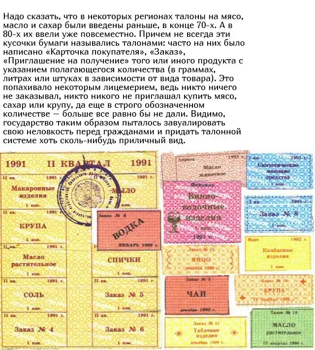 Для тех, кто был рожден и жил в Советском Союзе, воспоминания о прошлом отнюдь не всегда ограничиваются светлой ностальгией. Как известно, на закате советской эпохи были и такие времена, когда минусов действительно хватало. К примеру, одним из таких минусов были "талоны" на продукты и различные предметы первой необходимости. Тем не менее, эти талоны, которые были введены в середине 80-х годов, не являлись "первым опытом". До этого талоны в Советском Союзе вводились, как минимум, трижды.