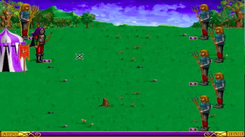 Поле битвы в первых Героях было представлено гексагональной сеткой 5 x 7 . Каждое существо в армии обладало уникальными характеристиками. Одна из культовых пошаговых стратегий.