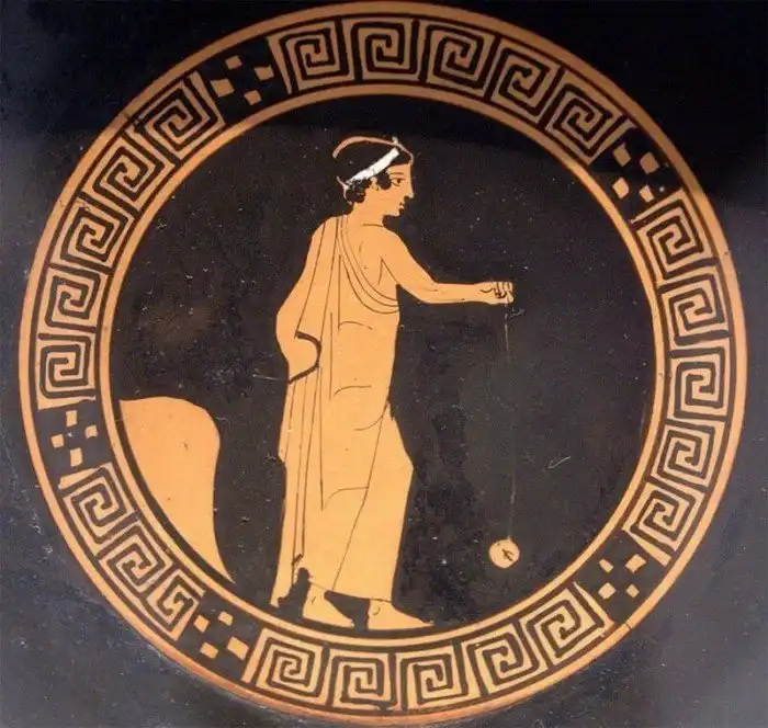 Если вы интересуетесь древнегреческой археологией, то вам наверно уже известно, что йо-йо существует гораздо дольше, чем многие думают. Во время раскопок на Средиземноморье, археологами были обнаружены йо-йо, изготовленные древними греками из бронзы и глины. Действительно, один из образцов, представленный в музее искусств Метрополитен, сделан из глины и датируется 460-450 до н. э. Кроме того, несколько античных ваз, датируемых 440 до н. э., украшены рисунками, изображающими детей и взрослых, играющих с йо-йо.