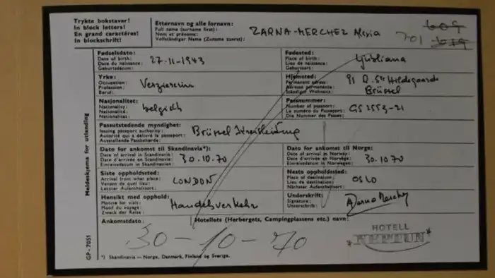 21—24 марта 1970 года под именем Женевьева Лансье из Лувена она жила в Viking Hotel в Осло.