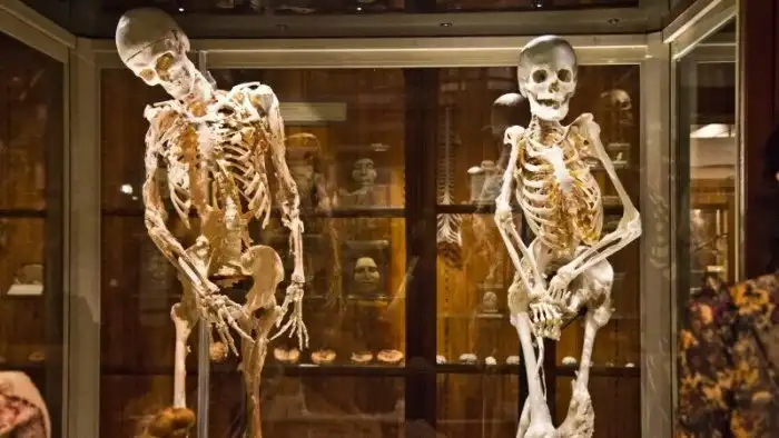 Сложно сказать, что бы стало с такими пациентами на территории Европы в ранее Средневековье, эпоху религиозных войн или период расцвета инквизиции. Так, например, в 1744 году для медицинского осмотра тела, напугавшего врачей, привлекли даже служителей церкви. Преподобный Дин Копинг вместе с епископом Робертом Р.Р. и Чарльзом Смитом осматривали скелет умершего от фибродисплазии, испытывая одновременно религиозный трепет и собственное мужество на прочность. Из известного описания мы можем выделить следующие моменты: весь скелет представляет из себя цельную, не распадающуюся и несгибаемую структуру. Лопатки срослись в пластину, от костей бедер отходят гребни и шипы, напоминающие побеги коралла или ветви жуткого растения, длинной они достигают от 8 до 9 дюймов. Из задней части пяточных костей вырастают шпоры. Массивные деформированные челюсти удалось открыть только ножом. Болезнь настигла мужчину в возрасте 18 лет и к 60 забрала его жизнь.