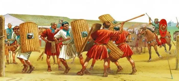 Вообще, солдату расслабиться не давали. Скажем, по уставу воинскому отряду полагалось каждый раз, останавливаясь на ночь, сооружать укрепленный лагерь. Причем с обязательным рвом и валом по периметру. И занимались этим воины не снимая доспехов – чтобы всегда быть готовым к возможным неприятностям вроде внезапного набега.