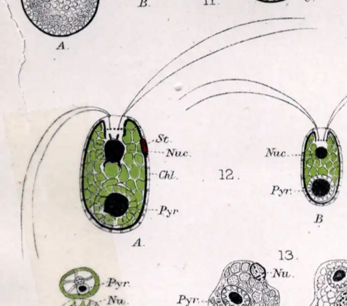 У водоросли исчезает глазок, жёсткая клеточная стенка и даже жгутики; она теряет способность к размножению и полностью интегрируется внутрь клетки конволютиды, навсегда становясь её неотъемлемой частью!