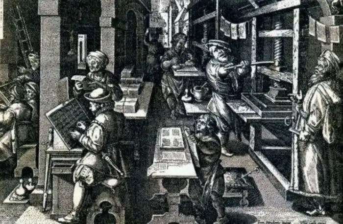 Йоханнес Гутенберг разработал систему подвижного металлического типа, которая могла вставляться в традиционный винтовой пресс, позволяя печатать несколько копий книги с большой скоростью. К концу 15-го века подобные печатные машины распространились по всей Западной Европе, выпустив до 20 миллионов публикаций. Вместо того, чтобы печататься на элитном латинском языке, многие из этих печатных машин работали на немецком, французском или голландском языках с явной целью обращения к массам. Неудивительно, что сегодняшние независимые СМИ — пресса — по-прежнему берут свое название от этой технологической инновации.