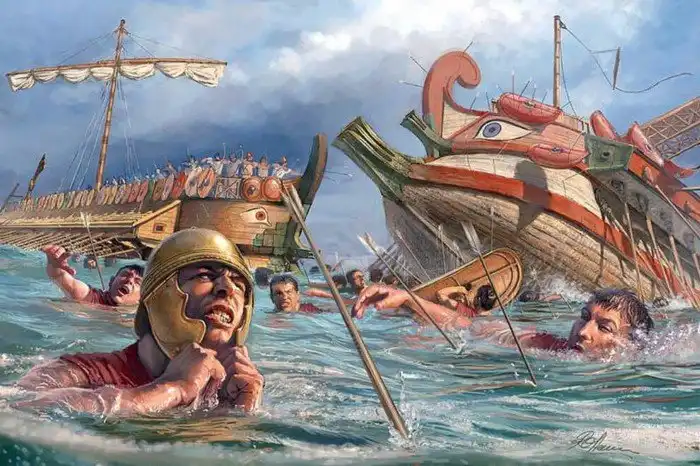 Тяжелые римские корабли двигались плотным клином вдоль берега Сицилии. У южной оконечности острова их встретил карфагенский флот. Легкие и маневренные суда африканцев были выстроены в линию.