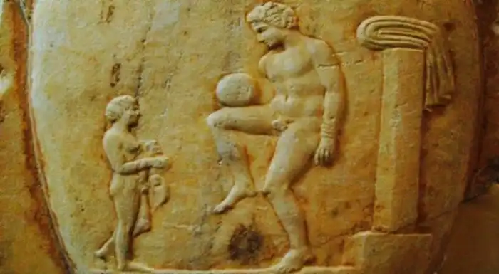 Древние греки тоже любили играть в мяч. Они считали его абсолютным совершенством, ведь шар так похож на солнце и луну. В Греции мячи тоже шили из кожи, и набивали перьями или мхом.