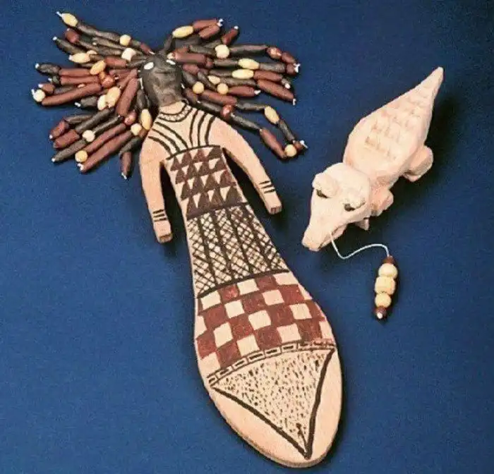 Подобие погремушки, было обнаружено в Египте. Возраст находки 2300 год до нашей эры. Но этот драгоценный предмет использовали не для развлечения младенцев, а для ритуальных обрядов в честь богини Исиды. Навершия систра – это музыкальный инструмент, который трясли, чтобы извлечь из него звук. Его обычно изготавливали из драгоценных металлов, и украшали изображениями богинь.