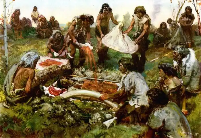 Для этого мало было подойти с подветренной стороны, следовало или смыть запах, или, в крайнем случае, перебить его более сильным, вроде запаха падали (так делают собаки). Однако абсолютное большинство людей, в самых разных культурах, терпеть не могут запаха падали — вероятно, и в каменном веке охотники предпочитали хорошо помыться или даже соскребать пот и грязь с тела (как делали, например, в небогатой пресной водой Древней Греции), заглушив остатки человеческого запаха каким-нибудь жиром. Возможно, смешанным с размятыми травами, чтобы пахло приятно и для добычи, и для охотника.