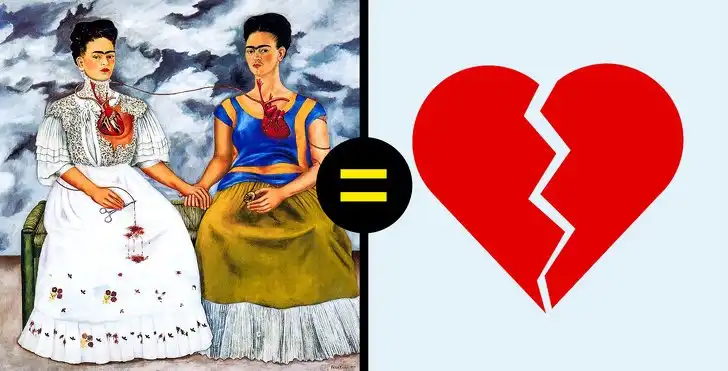 Согласно самой распространенной интерпретации, картина отражает трагическое событие, которое произошло с художницей. А именно болезненное расставание с мужем, художником-монументалистом Диего Риверой. Работа была закончена в 1939 году, вскоре после их развода. На полотне изображены две Фриды — два противоположных образа. Справа — та, которую любил Диего, слева — та, которую он предал. Художница противопоставляет любовь к мужу и неразрывную с ним связь даже после расставания и свое глубокое одиночество и разбитое сердце.
