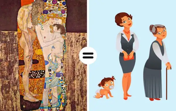Работа является ярким примером символических произведений Климта. С одной стороны изображена маленькая девочка в объятиях молодой женщины, а с другой — пожилая женщина, отчаянно прикрывающая лицо. И чем дольше мы смотрим на эту картину, тем больше убеждаемся в том, что это не 3 поколения семьи, а одна и та же женщина на разных этапах ее жизни, — символ жизненного цикла и неизбежности течения времени.