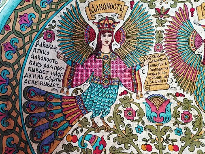 Алконост – слыша её пение, люди забывают обо всём на свете. Для кого-то это и есть счастье. Но явно не для всех! Происходит из древнегреческого мифа о девушке, превращённой богами в птичку-зимородка. Зимородок по-гречески – алкион. Алконостом стал по ошибке.