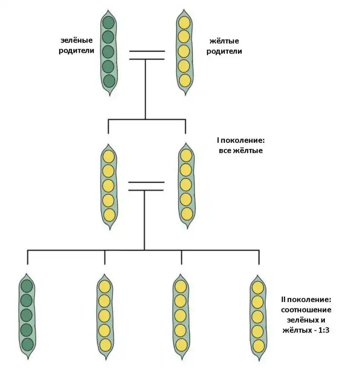 Мендель определил, что существует два фактора, которые определяют наследственность: «доминантный» (активный) и «рецессивный» (пассивный). Чтобы это определить, потребовалось скрестить между собой целых 30 тысяч семян гороха!