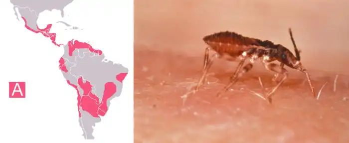 Болезнь Шагаса, родственник Африканского трипоносамоза, вызываемая родственным же видом одноклеточных паразитов трипанасомами - T. cruzi - обычно передается людям и другим млекопитающим через кровососущих «поцелуйных клопов» из подсемейства триатомовых. Ощутить предварительные ласки насекомых можно практически на всей территории Южной и Центральной Америки, сэкономив на отеле или посетив пару злачных мест. У клопов, как у истинного зла, десяток имен: vinchuca в Аргентине, Боливии, Чили и Парагвае, barbeiro в Бразилии, pito в Колумбии, chinche в Центральной Америке и chipo в Венесуэле.