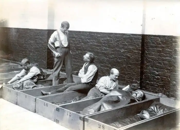 За один пенни можно было просто прийти посидеть на стуле. Но если посетитель хотел на стуле уснуть, он должен был платить уже вдвое больше! Спать, повиснув грудью на верёвке, было дешевле.
