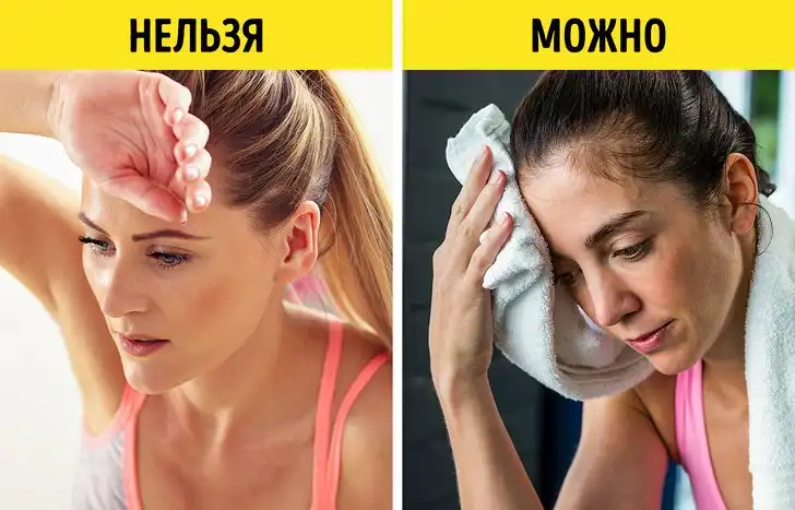 14. Протираем пот руками