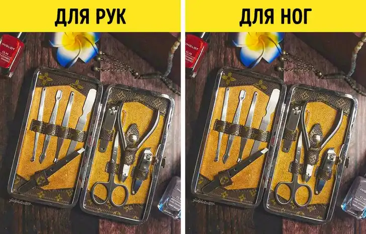 Следует держать в доме отдельные наборы маникюрных инструментов для ногтей на руках и ногах. Таким образом мы не будем переносить бактерии с ног на руки, когда в очередной раз задумаемся о маникюре.