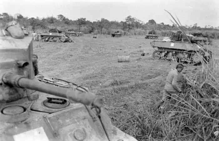 Лёгкие танки M3 Stuart из состава 1-й временной танковой группы во время действий в Бирме; апрель 1944-го года