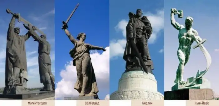 Без сомнения, каждый прекрасно помнит грандиозные памятники «Родина-Мать» на Мамаевом кургане в Волгограде и «Воин-Освободитель» в Трептов-парке в Берлине. Невероятная энергетика огромной скульптуры «Родина-Мать» с поднятым кверху мечом – символ освободительной борьбы советского народа. «Воин-Освободитель» со спасенной немецкой девочкой на руках и с опущенным мечом, попирающим свастику – символ победы над фашизмом.