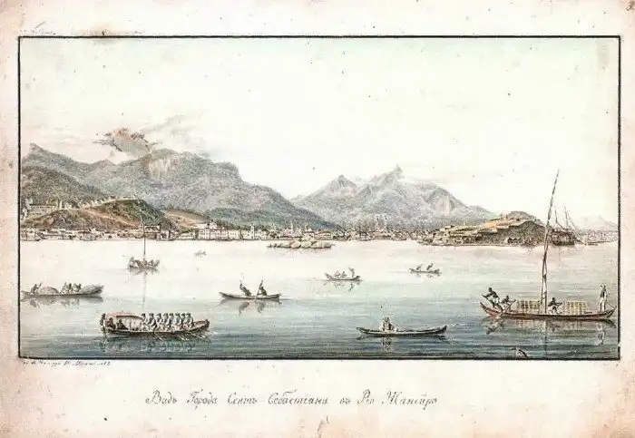 Вид города Сен-Себастьян на Рио Жанейро. С рисунка Г. Лангсдорфа
