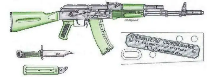Позже традицию перенял и АК-74, на основе которого в 1986 году также была выпущена ограниченная серия наградного оружия: