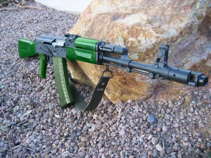 Предполагалось, что все серийные АК-74 будут иметь такие пластиковые элементы, однако на деле производство деревянных деталей оказалось намного более дешевым, чем производство деталей из пластика, отчего от последнего вынуждены были отказаться.