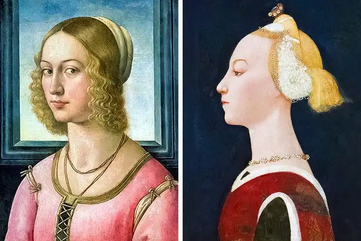 Во времена Ренессанса в моде был золотистый цвет волос, и, чтобы добиться такого оттенка, девушки использовали шафран и лимон. А еще они подставляли локоны солнцу в шляпах без дна: поля такого аксессуара при этом защищали лицо от загара.
