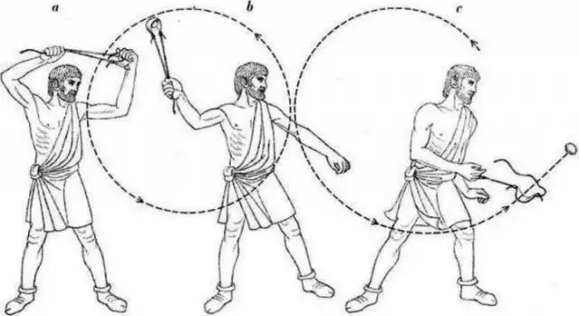 Единственным недостатком пращей было то, что они требовали немалой сноровки в обращении. Стрелять из пращи совсем уж не просто. В плотном строю ее раскручивали вдоль стела стрелка, а в свободном строю – над головой. В последний момент метатель отпускал одну из шлеек пращи, после чего снаряд покидал «карман» в нужном направлении.