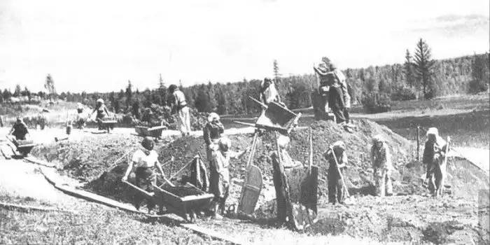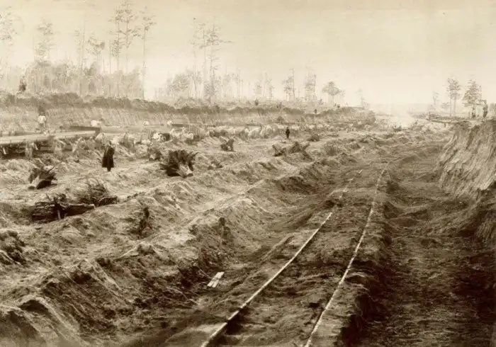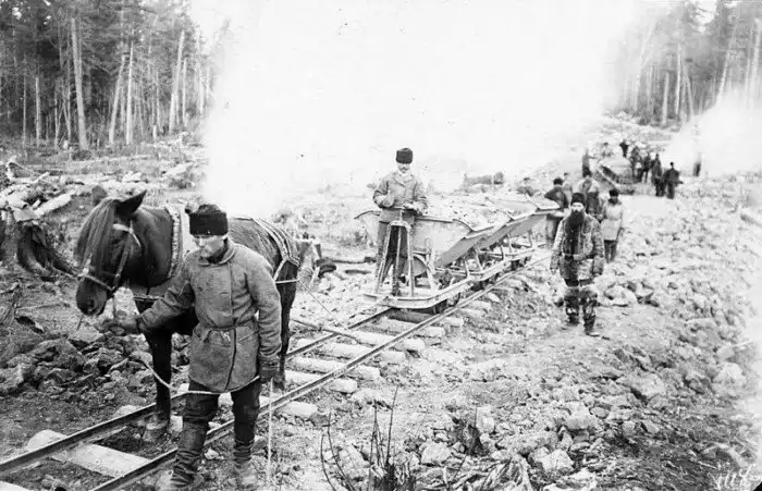 Ведущая профессия на отсыпке земляного полотна - это путевые рабочие, которые во времена Российской Империи собирались по всей стране в целые артели, участвовавшие в строительстве железных дорог. Несмотря на адский труд и невыносимые условия, попасть простому человеку на заработки в артель было очень не просто. Нужно было пройти ряд серьёзных испытаний.