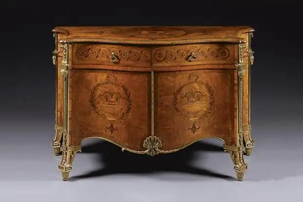 Лучшие работы известного французского мастера голландского происхождения Бернарда II Ван Ризамбурга являются украшениями многих музейных и частных коллекций, и появление его комодов или секретеров на аукционных торгах сразу же вызывает ажиотаж. Ван Ризамбург использовал очень трудоемкую и дорогую для своего времени японскую технику нанесения изображения на поверхность мебели, причем применялась не только аутентичная техника, но и материалы — например, знаменитый японский лак, достать который было очень сложно в силу тогдашней закрытости Страны восходящего солнца. Понятно, почему в декабре 2012 года на лондонских торгах Cristie’s секретер, сделанный мастером в 1756-57 годах, был продан за 3 с лишним миллиона фунтов стерлингов.