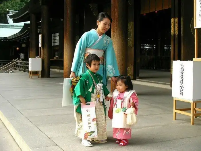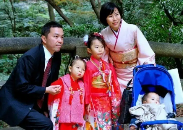 Дети в японской семье тоже полностью на попечении мамы. Папы же поздно приезжают с работы, и видят своих родных исключительно по выходным. Ребёнок находится рядом с матерью до пяти лет, так как в детский сад малышей здесь отдавать не принято. Японка абсолютно всюду отправляется со своим чадом.