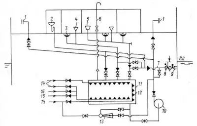 Наконец, корабль может набирать и сбрасывать через уже упомянутую систему технические воды, которые используются для охлаждения двигателя и ряда других систем. Такая вода просто прокачивается через мотор, не давая ему перегреться.