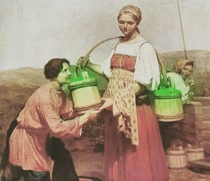 Коллаж картины Алексея Венецианова «Встреча у колодца».